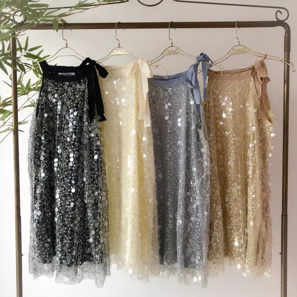 TECIDO: TULE COM APLICAÇÕES DE PAÊTE E FIOS DE LUREX
